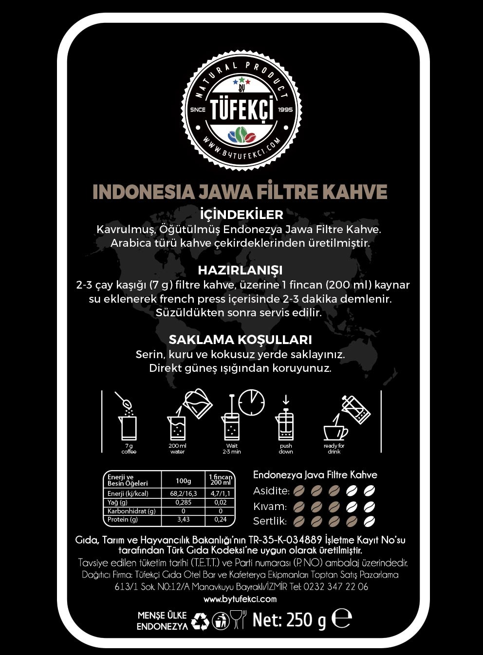 By Tüfekçi 250 gr Endonezya Java Filtre Kahve