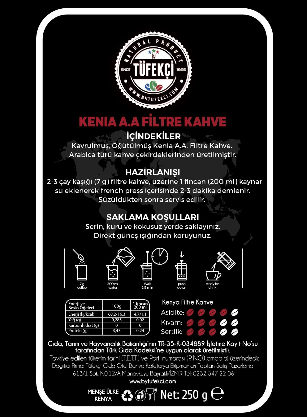 By Tüfekçi Kenia A.A 250 gr Filtre Kahve